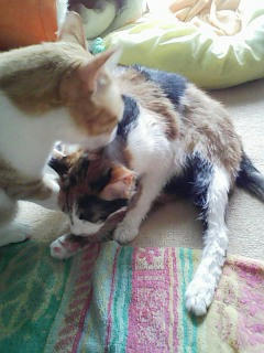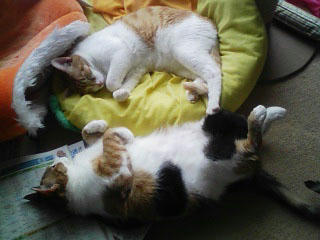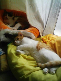というわけで、昨日の夜から今朝から猫達がおかんの布団にもぐりこんできています。