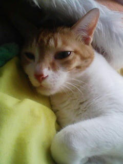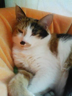 が、夜になるとやっぱりちょっと寒いのかおかんの膝の上で丸まって寝たり、布団の上で寝てたりします。