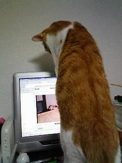 更に物足りなくなったのか…パソコンの裏の様子を探っていました。