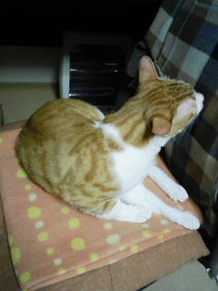 みかんが椅子の上に座ったままで床の上に戻してました凹