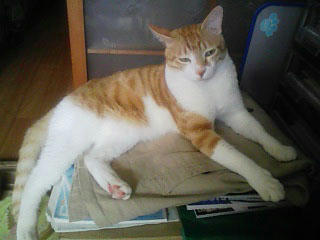 最近お気に入りになっている場所にみかんが乗っかって伸びてました。