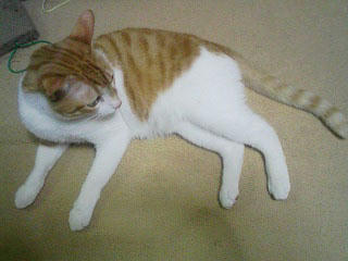 なんだろうなぁ…香箱組むのが苦手なのか、そういう骨格なのか…とりあえずぱっと見で肩がみかんに比べて出っ張ってますね。