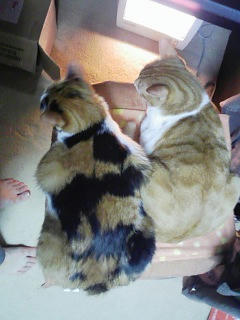 昨日、今日とちょっと肌寒いようで布団で寝てると猫達が密着してきます。