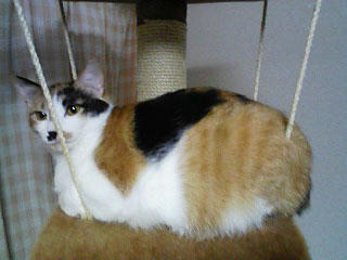 いよいよお気に入りの場所のブランコの筒の上も手狭になってきたようです…