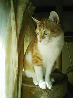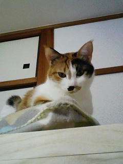 猫タワーの上の方からか、この場所からよくおかんを見張っています。