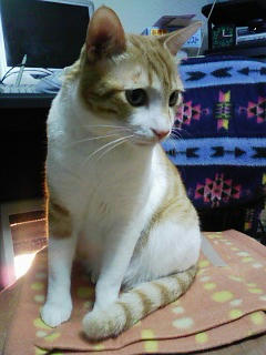 いつものようにハロゲンヒーターの前に陣取って暖を取るみかんです。