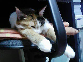 この箱の上に乗ってる時は、おかんを監視するためか(笑)概ねこちら側を向いて寝てるのですが、珍しく壁の方を向いていました。