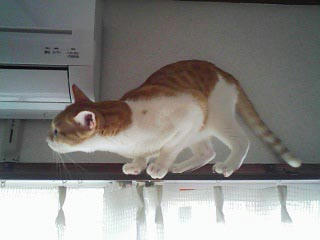 エアコンを新しくしてから少し気になるようで、よくカーテンレールに登ってるみかんをみかけます。