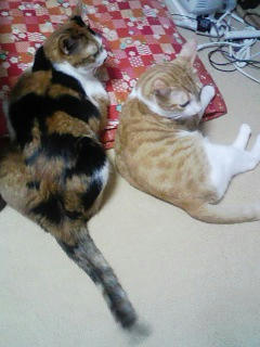 がりがり猫は嫌だなぁ…どうやったらみかんだけ太らせる事ができるのか…やっぱり別にごはんあげるしかないのかな。