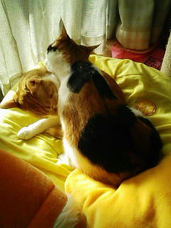 みかんはこの時物凄く眠かったようで、ゆずにぺろぺろされるがまま…