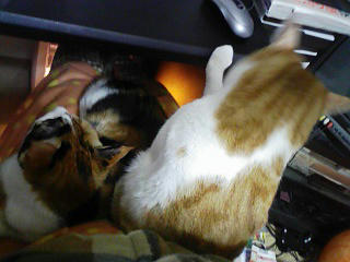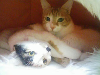 ちなみにこの写真を撮ったちょっと後にみかんが寝てるゆずにちょっかいを出し始めてねこぱんち大会になり、追いかけっこになりました。