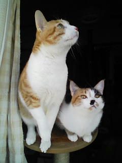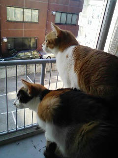 すると条件反射のように猫達が外を覗きに来ました。