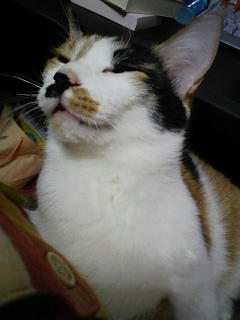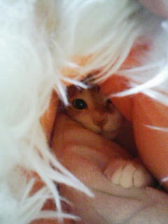 丸まってる所でも撮っておくか…と思って携帯を構えてもぞもぞしてると起きてしまいました。