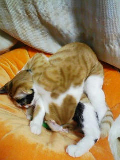 どうしたね?と覗いてみると、みかんがゆずにちょっかいを出していたようです。