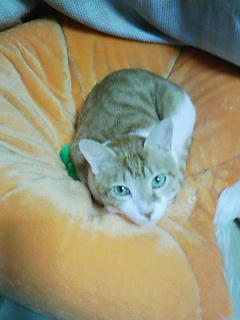 ゆずがおかんの膝の上に乗ってきて寝ていました。