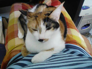 今夜もゆずがいつの間にかそっと膝に乗って寝ていました。