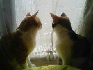 外で何かがうごめいていたようで、二人とも夢中で見ていました。