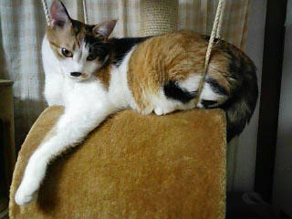 ちなみにみかんがたんすの上、ゆずは棚の上で寝てました。