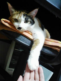 顔が重いのか何なのか、ゆずはよくこうして何かの上にアゴを乗せています。