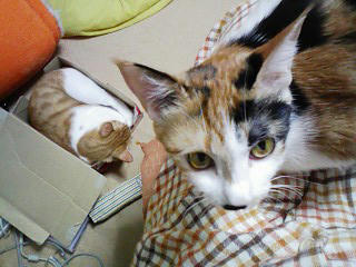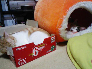 その傍らではかたくなに例の箱の中で寝るみかん。