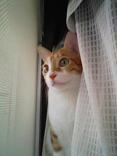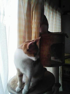 この時のゆずはおかんが携帯片手にウロウロしていたのでこっち側を向いていますが、おかんがノータッチの時はこの丸板の上か一段下の板辺りから外の様子を伺ってます。