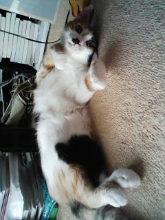 そうやってまとわりついてくるのが嬉しくもあるのですが…床に直で座っていて立ち上がろうとするその足場に現れるのは止めて欲しいです。