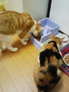 この時はもうすでにゆずが先に食べてて、暫くしたらみかんが食べにきました。