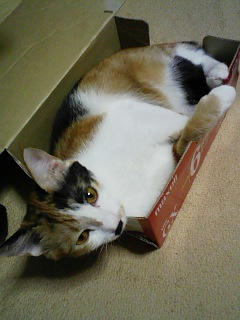 今、ふと背後で物音がしたので振り返ったらまたみかんがこの箱に入って寝ていました。