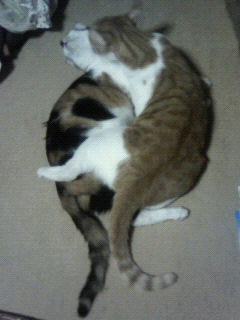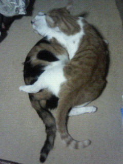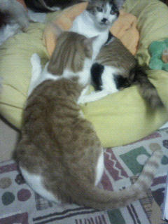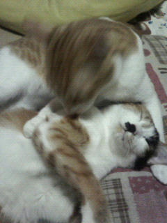 おかんにお腹撫でてもらいながらみかんにもグルーミングされてやっと満足です。