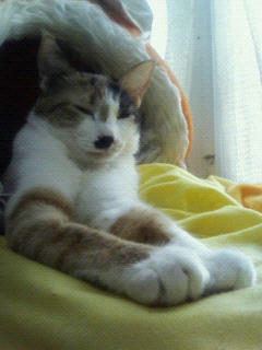 ゆずがすっかりつぶれてぺったんこになったオレンジクッションで丸まってました。