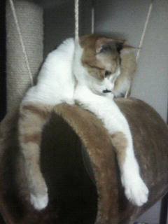 ブランコの紐の存在も全く気にせずに筒の上でたまに丸くなり気味になって寝てる時もあります。