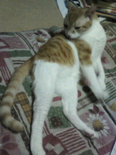 脇腹の背中よりの辺りの毛繕いの時のポーズがなんとも窮屈そうです。
