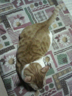 最近はおかんの布団で寝るのがお気に入りなようです。