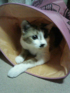 おお!筒の上に乗るのはお得意でも中に入るのは滅多にないのに…!と驚いて思わず写真に撮りました。
