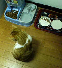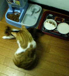 カリカリをお湯でふやかしたものだったんですが…みかんがそれを食べたくて食べたくて仕方がないようでした。