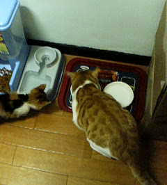暫くしたらみかんも蕎麦に飽きたのか普通にカリカリを食べに行ってました。