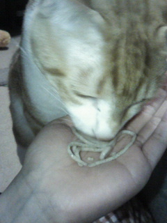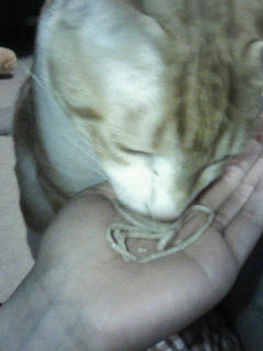 ゆずが寄ってきたので試しに短いのを1本あげてみました。