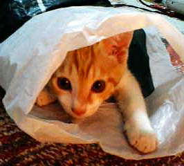 本屋の袋に出たり入ったり遊んでました。