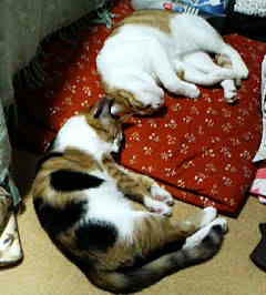 みかんは座布団で一人で寝ていたのに。