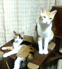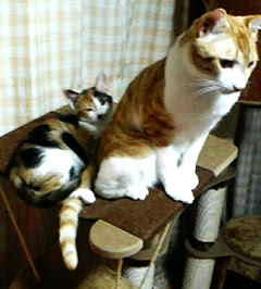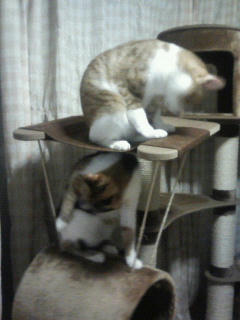 うちのキャットタワーに二人乗りしていた時の画像。