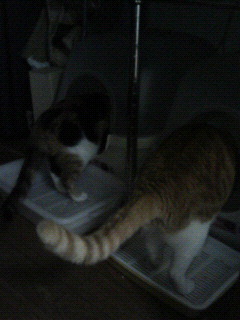 匂い確認なのか、固まったちっこ玉舐めたりしてます。やーめーてー