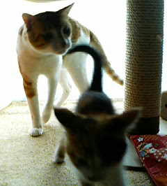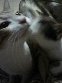お互いフーともシャーともせず。みかん…私には威嚇してきた事あったのに(泣)