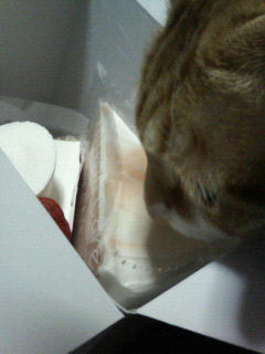 箱を開けたら興味深々で匂いを確認しにきたみかん。