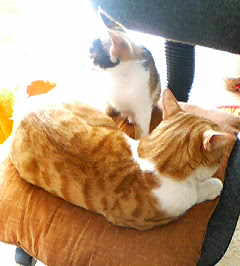 今日はこたつ布団の上に(おかんの膝の上)ゆずが丸まり、こたつの中でみかんがおかんの足と足の間に丸まってました。