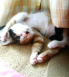 先住猫がいるにも関わらず、大胆なこの寝姿。 お腹丸出しです。