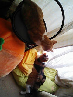 しかし、部屋のどこかでウロウロしているみかんが気になるようです。