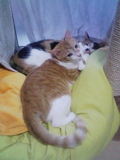 猫達は若干寒かったようで、朝目が覚めるとみかんがおかんが寝てる布団の敷き布団パットの中にもぐりこんでました。