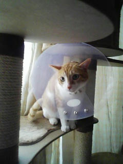 ちょっと前から元気に爪とぎもバリバリやっていたので、今度こそ大丈夫だろう、との予想通りにみかんのパラボラが取れました!